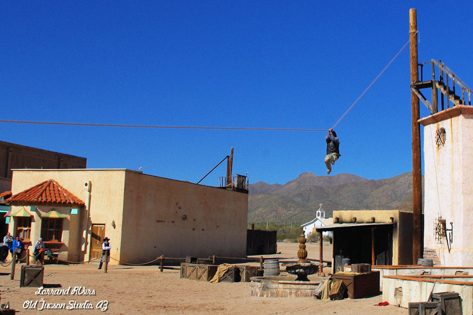 Old Tucson Studios is a movie studio and theme park just west of Tucson AZ, adjacent to the Tucson Mountains and close to the western portion of Sanguato National Park. Built in 1939 for the movie Arizona, it has been used for the filming of several movies and television western since then, such as Gunfight at the O.K. Corral and Little House on the Prairie. Opened to the public in 1960, historical tours are offered about the movies filmed there, along with live cast entertainment featuring stunt shows and shootouts. Old Tucson Studios was originally built in 1938 by Columbia Pictures on a Pima County-owned site as a replica of 1860s Tucson for the movie Arizona, starring William Holden and Jean Arthur. Workers built more than 50 buildings in 40 days. Many of those structures are still standing.We took in a re-enactment of fist fights and shoot-outs by three talented stunt men.