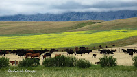 And Alberta Cowboys doing a round up. We wondered why there was so much traffic and saw 'cow pies' on the road at a point where a coral of cattle were placed. A truck was ready to load them up.